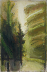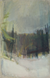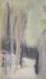 Триптих «Зимняя тропа», как и многие другие пейзажи Ирины Старженецкой, можно выделить в особую группу – «пейзаж-настроение». В этом триптихе показаны зимний лес в яркий солнечный полдень, переданный в желто-зеленой гамме, розово-фиолетовой закат и нежно-голубой вечер. Здесь именно цветом и тоном художница передает натурное правдоподобие зимнего леса в разное время дня.